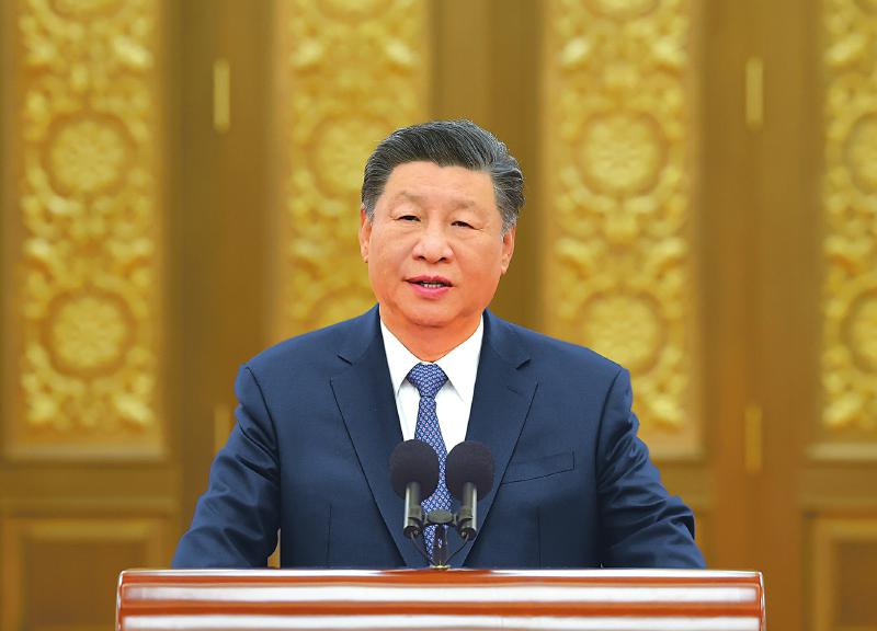 9月23日,党和国家领导人习近平、李强、赵乐际、王沪宁、蔡奇、丁薛祥、李希等在人民大会堂接见探月工程嫦娥六号任务参研参试人员代表并参观月球样品和探月工程成果展览。这是习近平发表重要讲话。 新华社记者 鞠鹏 摄