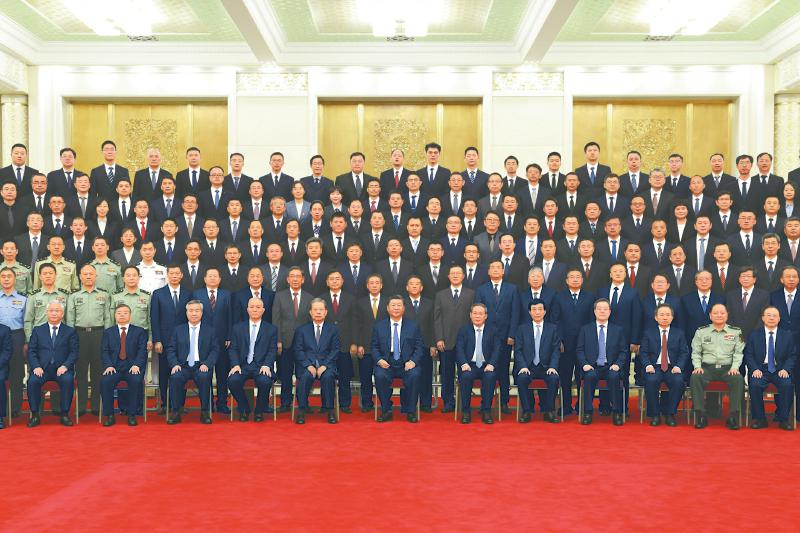 9月23日,党和国家领导人习近平、李强、赵乐际、王沪宁、蔡奇、丁薛祥、李希等在人民大会堂接见探月工程嫦娥六号任务参研参试人员代表并参观月球样品和探月工程成果展览。这是习近平等接见探月工程嫦娥六号任务参研参试人员代表。 新华社记者 姚大伟 摄