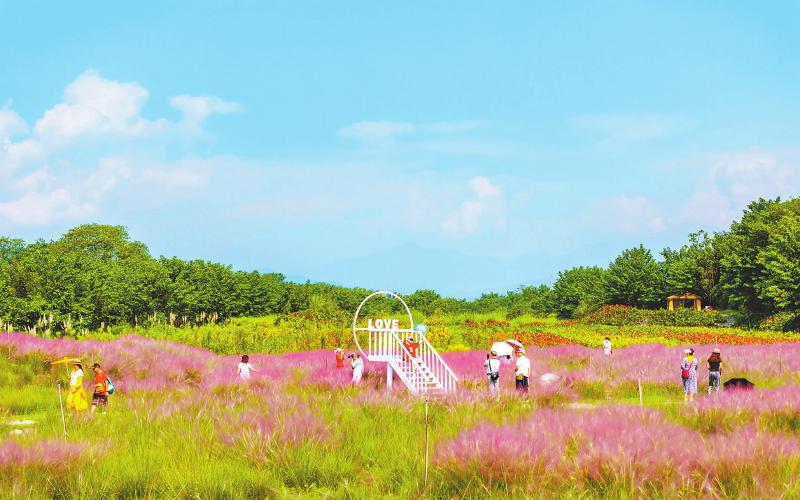 近日,成都市温江区寿安镇汪家湾花海的粉黛乱子草逐渐变色,“粉色田野”吸引众多市民游客观光打卡。 张志强 摄(C视觉)