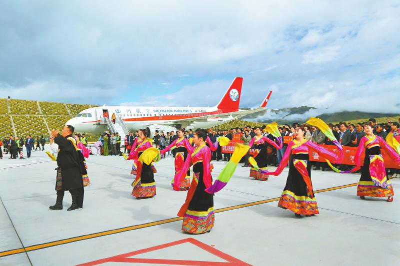 位于甘孜州德格县境内的格萨尔机场通航。 □民宗宣 (图片由省民族宗教委提供)
