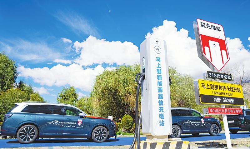 图为9月24日拍摄的318国道川藏超充绿廊罗布林卡超充站。 新华社记者 丁增尼达 摄