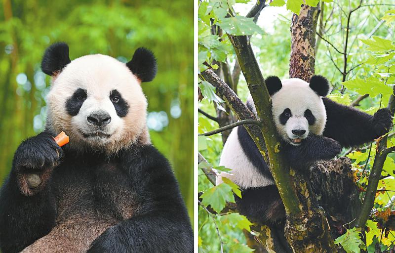 9月26日,第三对中央政府赠港大熊猫“安安”(上图)“可可”搭乘专机前往香港定居海洋公园。 新华社发(中国大熊猫保护研究中心供图)