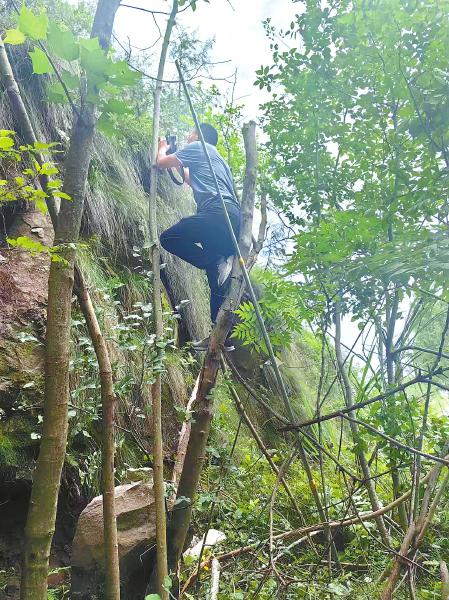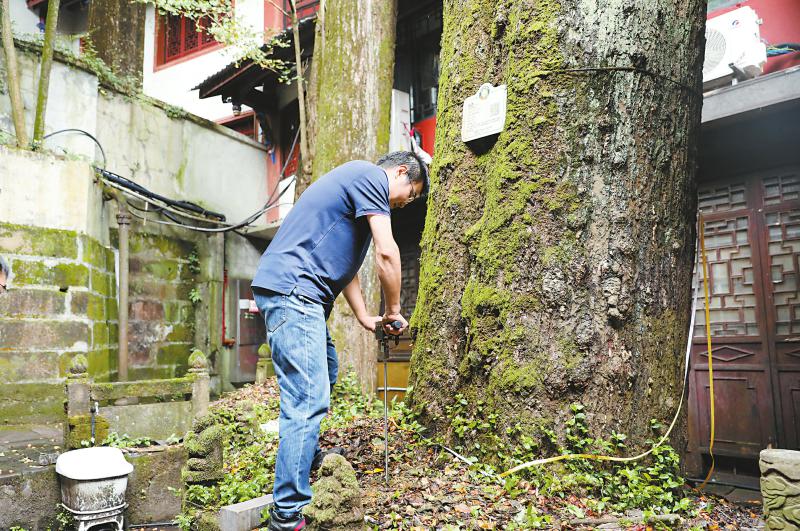 “古树医生”正在给古树测“胸围”。本栏图片均由成都观察 王翱 摄