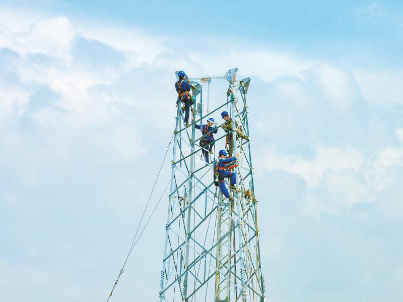 2024年9月,国网绵阳供电公司电力工人正在进行劲松—仙海110千伏输电线路铁塔架设施工。 田海 摄