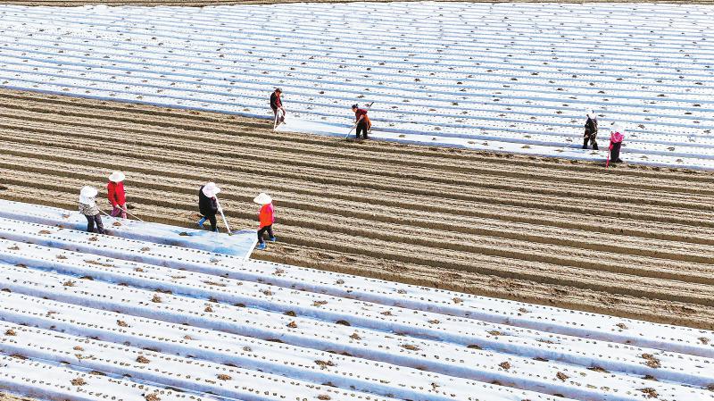 10月7日,遂宁射洪市沱牌镇桑树林村渝遂绵优质蔬菜产业带射洪核心区,农户们正在地里盖膜、管理萝卜苗,田间地头一片繁忙景象。 刘昌松 摄(C视觉)