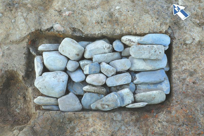 三星堆玉石器作坊遗址的石斧坑。 四川省文物考古研究院供图