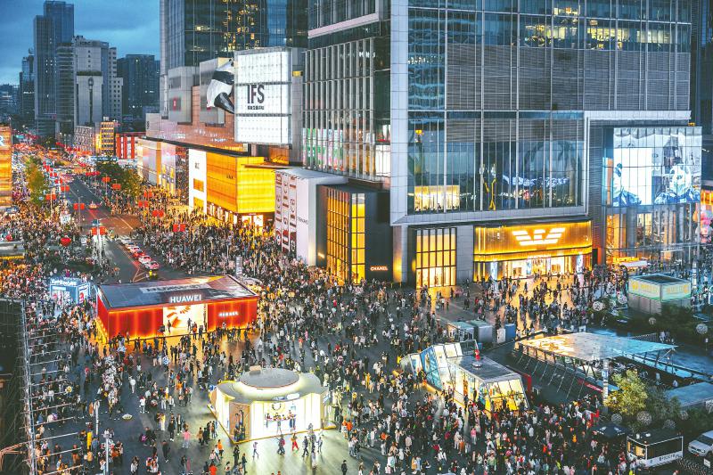 国庆节期间,春熙路商圈人头攒动。 张翔升 摄(C视觉)