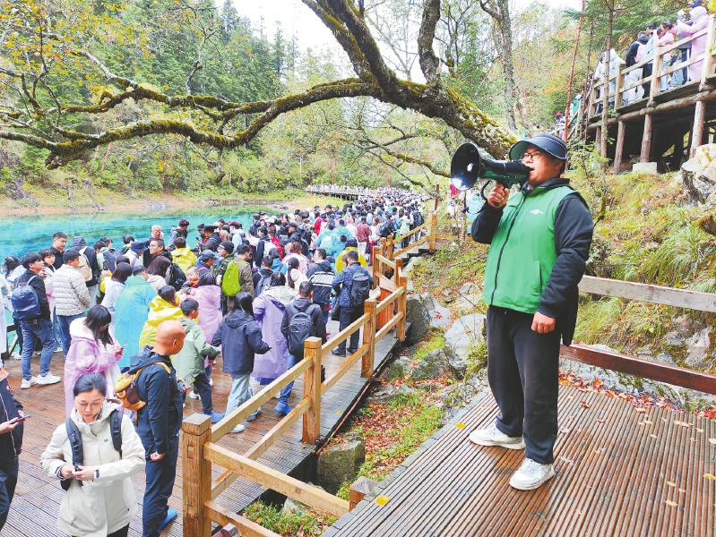 九寨沟景区2000余名工作人员、志愿者下沉一线。 九寨沟风景名胜区管理局供图