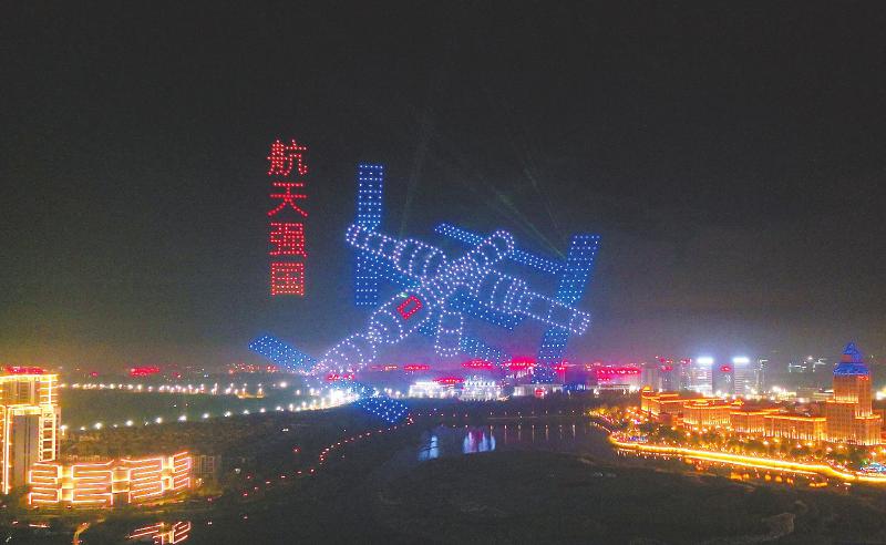 绵阳“科技之眼·涪江回响”上演千架无人机灯光秀。 绵阳市文广旅局供图