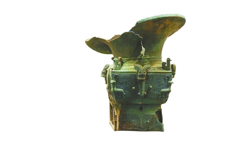 “匠心妙手——三星堆遗址新出土文物保护修复成果展示”上新文物象牙、青铜尊。三星堆博物馆供图
