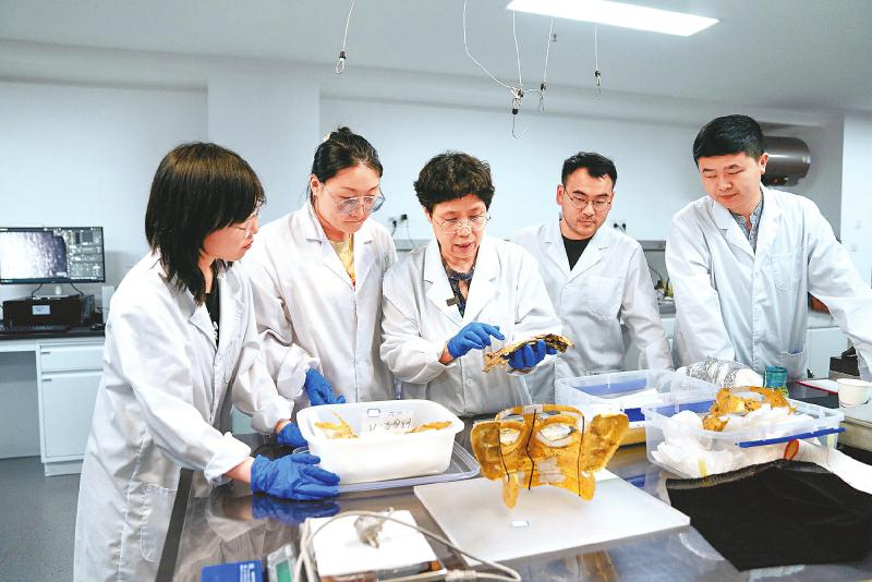 国家博物馆青铜研究所原研究员马燕如带领团队进行金器清理研究。 四川日报全媒体记者 吴晓铃 摄