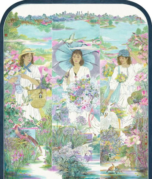 对于成都画院专职画家向洋来说,工笔画是表达世界的方式,更是心灵的栖居之所,在一笔一毫之中,她耐心地勾勒着内心的细腻风景。区别于传统工笔画,观念的注入是当代工笔画的一个重要特征,这种观念包括对传统的重新解读,对图示的探索研究等。对于向洋而言,当代的“新”一定要尊崇于传统的“旧”,二者并不是割裂的,而是相辅相成的。这幅《风的方向》虽为现代题材,画面却松动自然,刻画细腻,人物神态拿捏精准。向洋的作品总有一种雍容不迫的气度,似乎让观者脚步和呼吸都能沉静下来,她用画笔概括生活,寻找表达爱的方式,温暖而有力量。 (余如波)