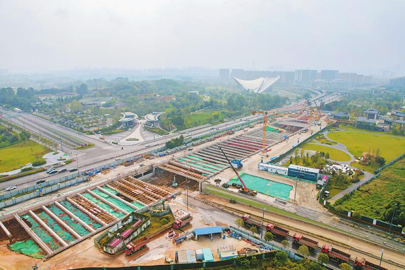 十月十五日,建设中的市域铁路成德S11线凤台三路站建设现场。四川日报全媒体记者郝飞摄