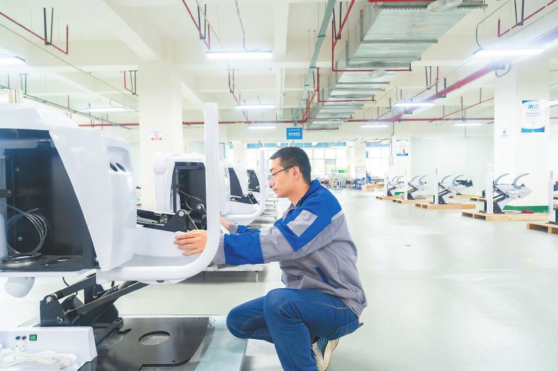 四川福睿医疗器械有限公司员工正在安装牙椅。资阳观察 吴昊江 摄