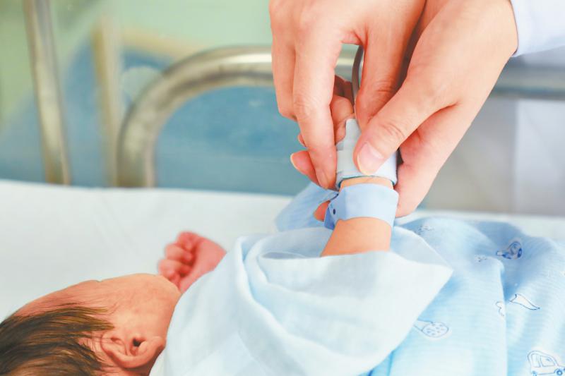 护士正在使用脉氧仪监测婴儿血氧饱和度。 吴胤强 摄