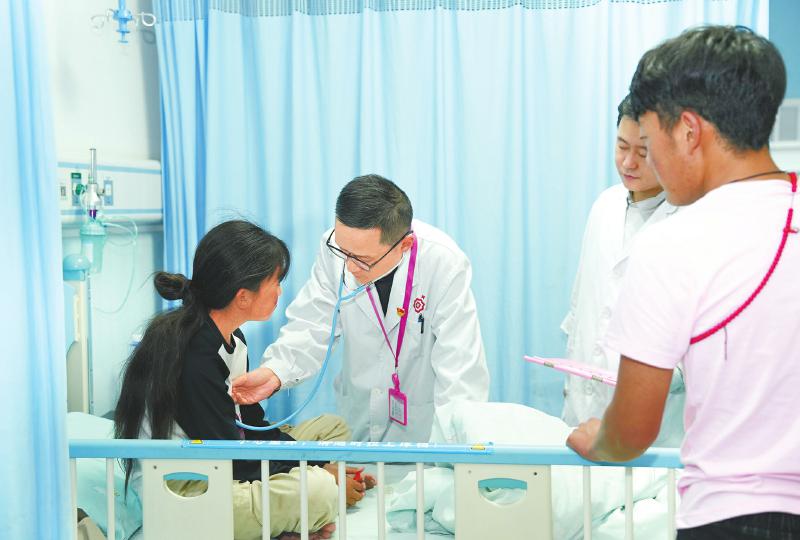 医生正在为一名患儿进行术前检查。 黄骏涛 摄