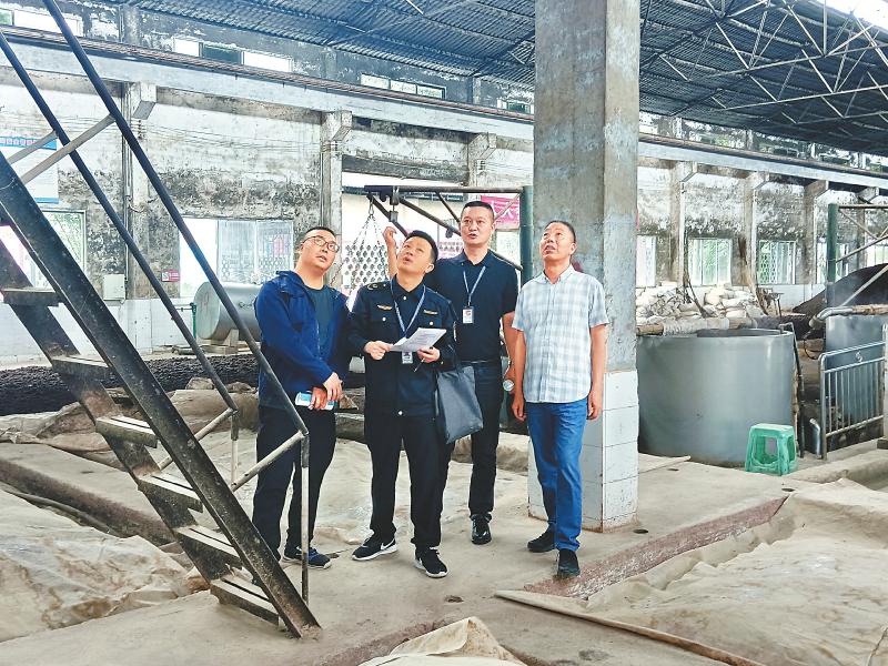 泸州市酒业发展促进局、市应急管理局、市市场监管局、市消防救援支队等执法部门对金美酒业开展联合执法检查。 受访者供图