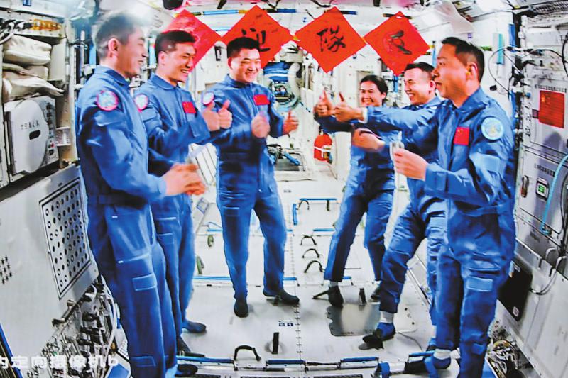 10月30日在北京航天飞行控制中心拍摄的神舟十九号航天员乘组。