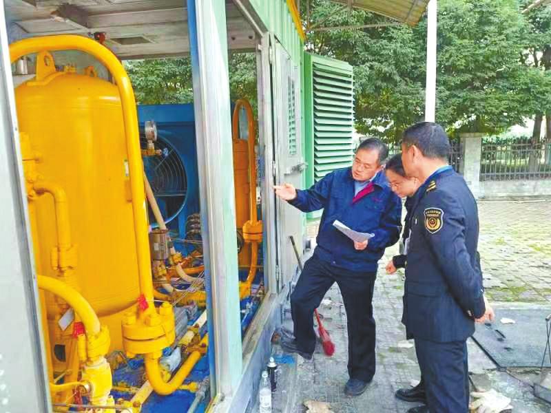 成华区市场监管局对CNG充装站的压力容器进行检查。