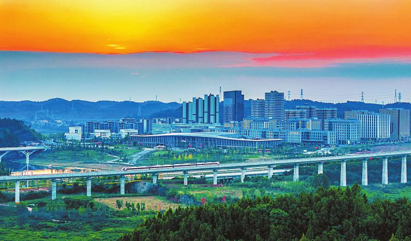 10月28日,成都轨道交通资阳线列车经过资阳临空经济区。 张天富 摄(C视觉)