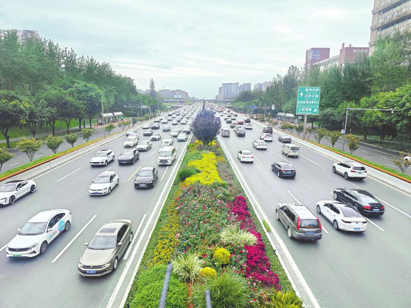 成都三环路天府立交东侧,车辆川流不息。 四川日报全媒体记者 吴枫 摄