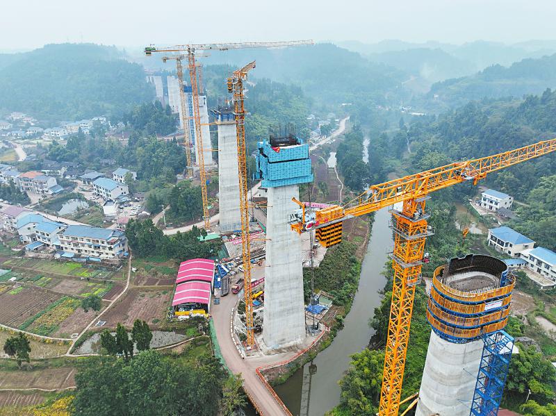建设中的成渝中线高铁田柳湾特大桥。长江沿岸铁路集团四川有限公司供图