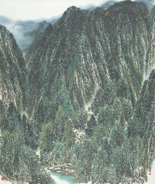 蜀山人家(中国画),尺寸:238cm×200.5cm。 唐允明 作