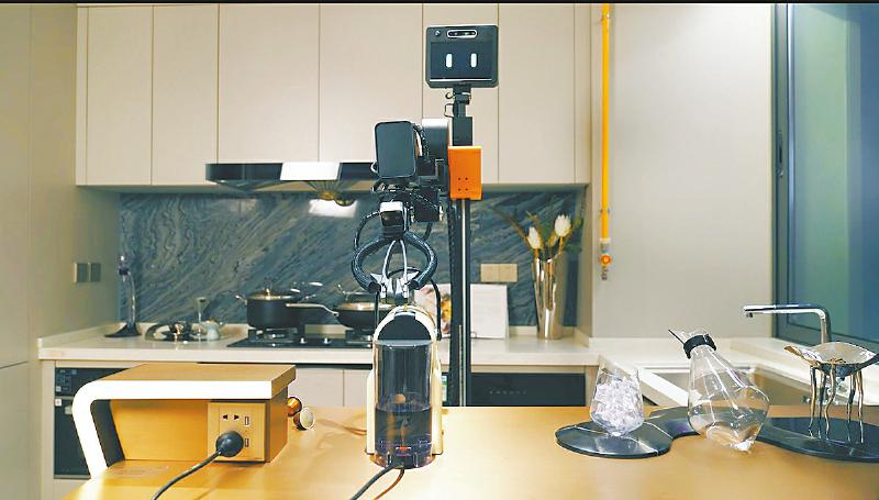 人形机器人“贡嘎一号”在泡咖啡。成都人形机器人创新中心供图