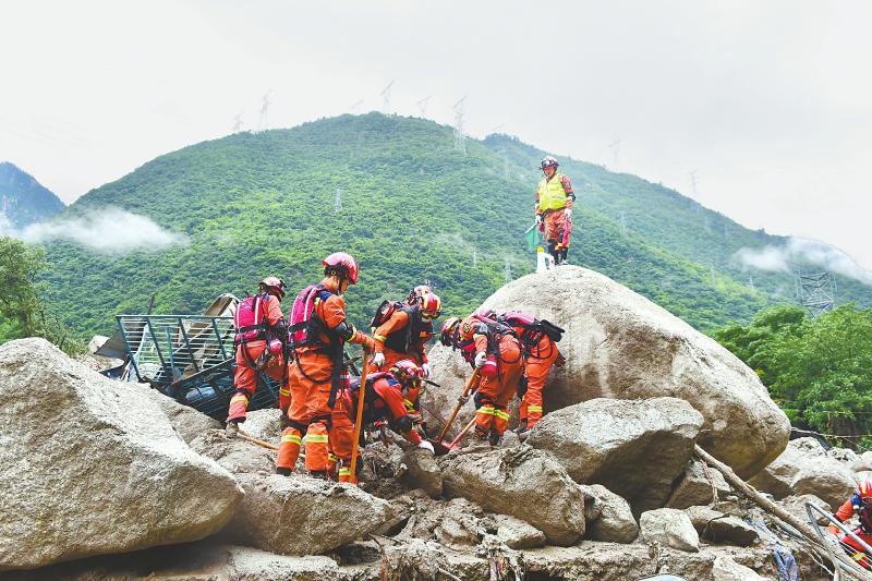 甘孜消防在康定姑咱“8·03”山洪泥石流灾害救援现场。