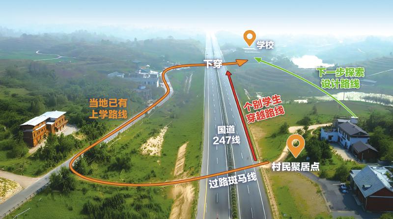 此前设计的玉家村学生上学路线,在穿过国道247线时没有安装红绿灯。李觐秋 摄
