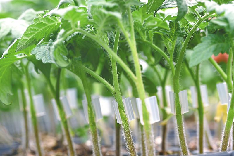绿怡果蔬种植专业合作社“育苗工厂”内嫁接完成的西红柿新品种。