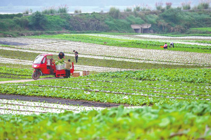 10月29日,在宜宾市翠屏区思坡镇,村民将收获的蔬菜装车。 庄歌尔 摄(C视觉)