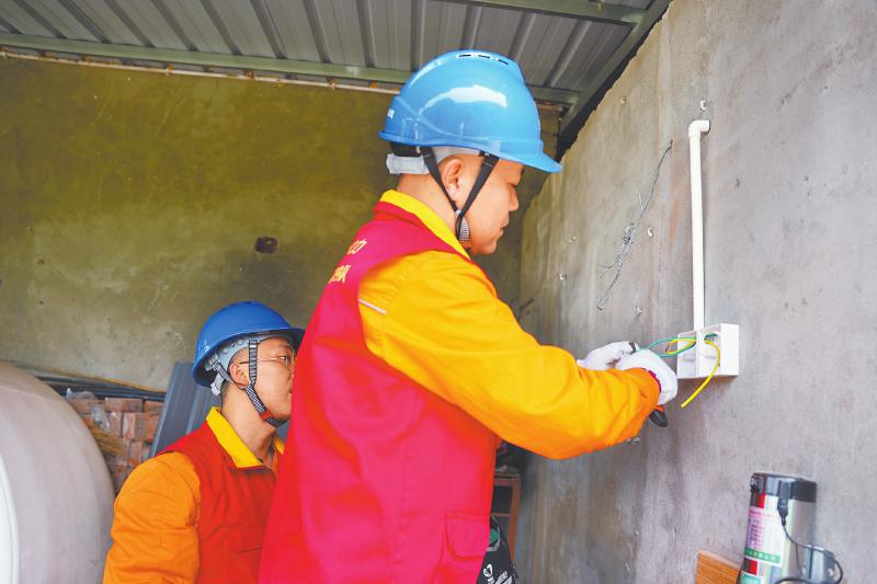蒲江县供电公司工作人员入户进行用电隐患排查。
