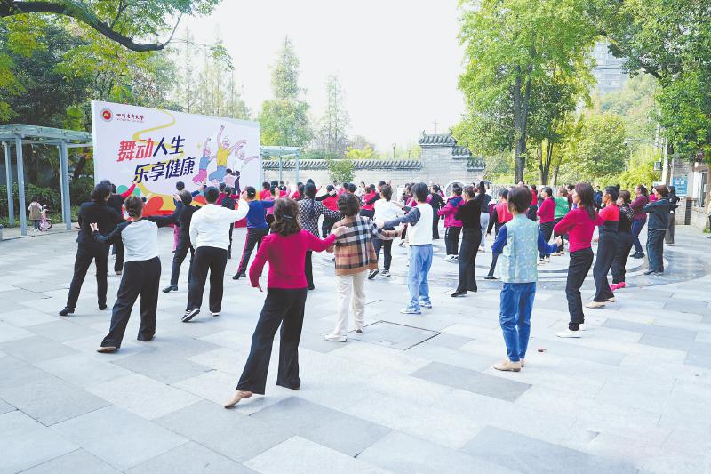 四川老年大学组织学员开展“舞动人生 乐享健康”活动。