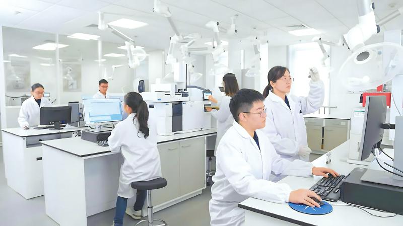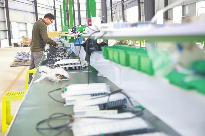 雅安天宝照明科技有限公司的技术人员在生产线上检查灯具。 雅安观察 黄刚 摄