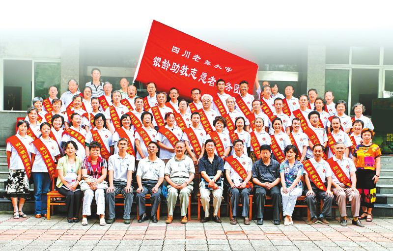 四川老年大学银龄助教志愿者服务团成立时合影。