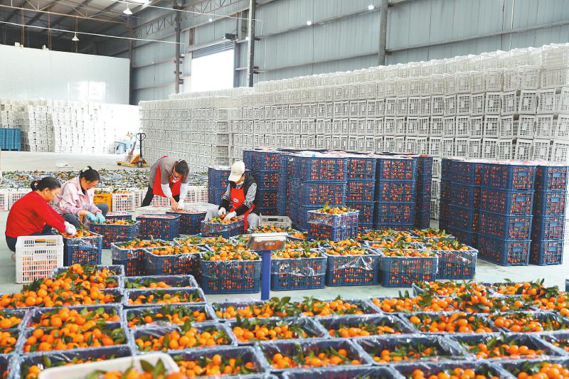 11月5日,在武胜县沿口镇五一村晚熟柑橘初加工中心,工人将砂糖橘分拣装筐。近期,当地砂糖橘迎来采摘高峰期,产品远销国内外市场。 谭晓宇 摄