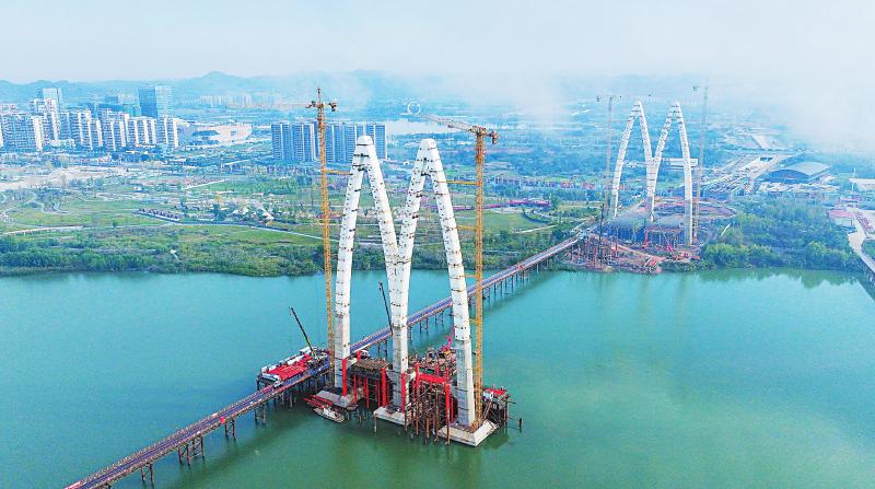 11月5日,遂宁市重点项目涪江六桥正加快建设。刘昌松 摄(C视觉)