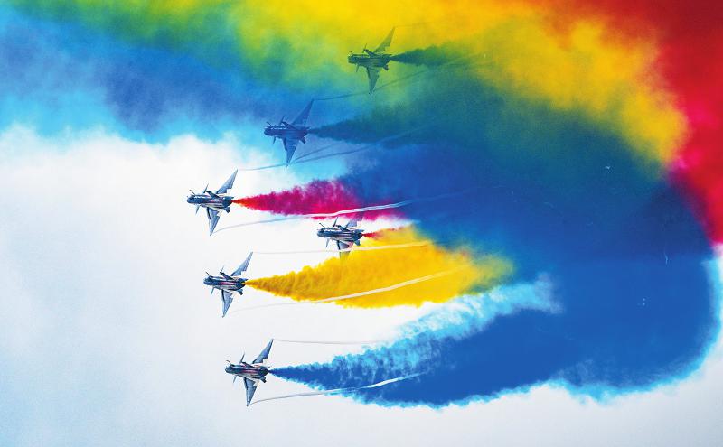 11月11日,空军八一飞行表演队在珠海进行适应性飞行训练,以独特的方式庆祝中国人民解放军空军成立75周年。 尹钢 摄(C视觉)