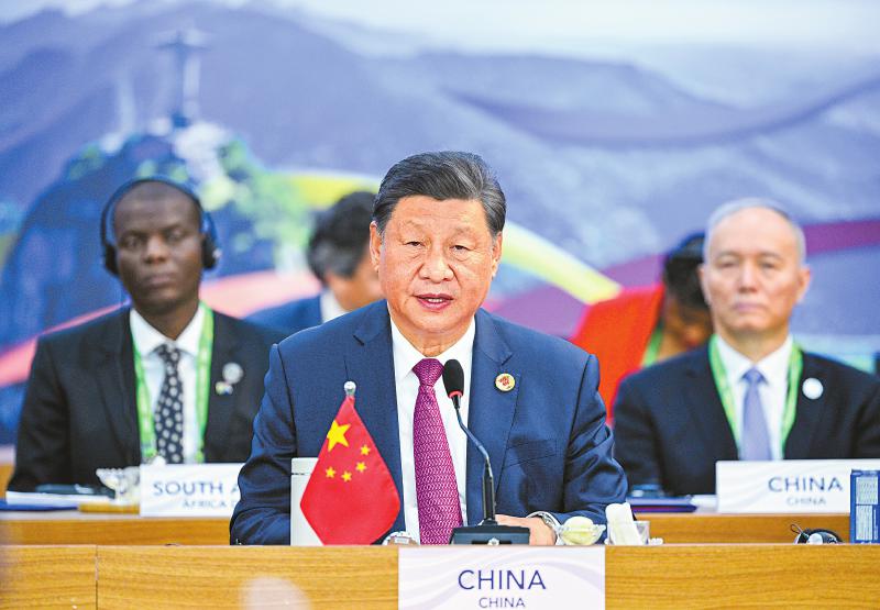当地时间11月18日下午,国家主席习近平在巴西里约热内卢继续出席二十国集团领导人第十九次峰会。在峰会第二阶段会议围绕“全球治理机构改革”议题讨论时,习近平发表题为《携手构建公正合理的全球治理体系》的重要讲话。 新华社记者 李学仁 摄