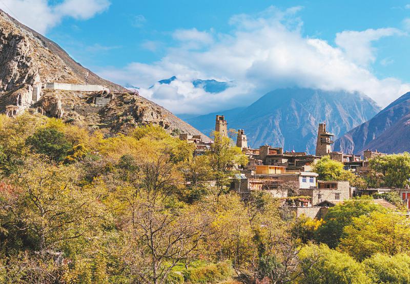 11月18日,理县桃坪村的初冬景色绚烂如画。
