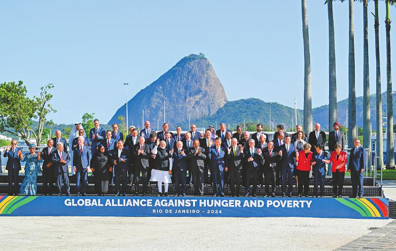 当地时间11月18日上午,国家主席习近平在巴西里约热内卢出席二十国集团领导人第十九次峰会。峰会把“构建公正的世界和可持续的星球”作为主题,并决定成立“抗击饥饿与贫困全球联盟”。这是习近平同与会领导人共同参加巴方发起的“抗击饥饿与贫困全球联盟”合影。 新华社记者 李学仁 摄