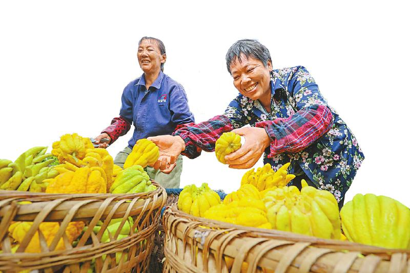 遂宁市蓬溪县蓬南镇川馥佛手产业园内,果农正在采摘佛手果。 刘昌松 摄(C视觉)