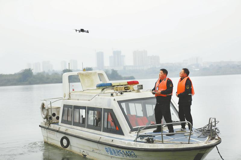 11月13日,在嘉陵江南充市顺庆段,顺庆区农业综合行政执法大队渔政中队的队员驾驶渔政船,使用无人机、望远镜等设备开展禁渔巡查。嘉陵江是长江主要支流之一,自2020年长江流域实施“十年禁渔”以来,南充市顺庆区河长办携手农业综合行政执法大队渔政中队,通过无人机巡河以及专人定时巡逻等方式,保护渔业资源和生物多样性,确保嘉陵江顺庆段禁渔落到实处。 黎涛 摄(C视觉)