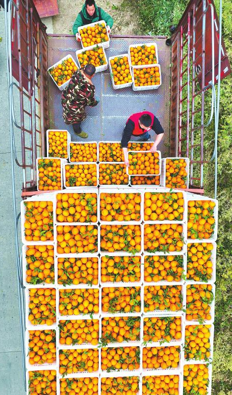 仁寿县板桥镇柑橘装车运往市场。 仁寿县委宣传部供图