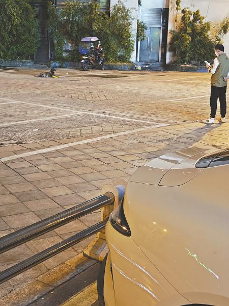 成都世纪城新国际会展中心附近,一条没有牵绳的中大型犬趴在空地上。四川日报全媒体记者 张庭铭 摄