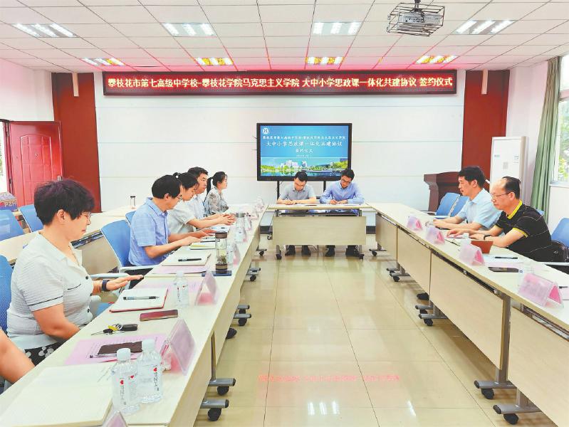 攀枝花学院马克思主义学院与攀枝花市第七高级中学校签署大中小学思政课一体化共建协议。