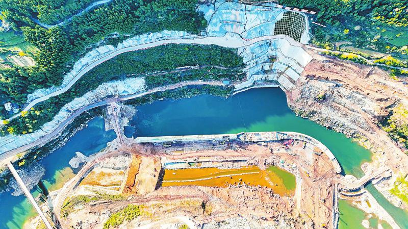 11月25日,巴中市通江县,在中铁十一局承建的青峪口水库建设项目现场,工人抢抓有利时机,加紧水库施工建设。青峪口水库是一座以防洪为主、结合供水、兼顾发电的大型水库,属国家150项重大水利工程。项目建成后,将提升渠江流域防洪能力,在城乡饮水、生态文明、经济发展等方面发挥重要作用。 程聪 摄(C视觉)