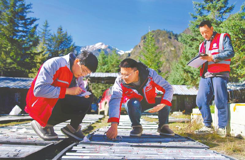 地质队员进行地质岩芯编号。 四川日报全媒体记者 李志强 摄