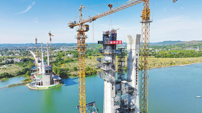 11月25日,横跨南充市顺庆区和高坪区的成达万高铁南充嘉陵江特大桥8号主墩封顶。 黎涛 摄(C视觉)